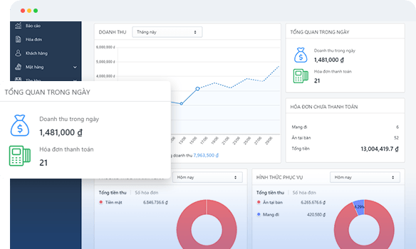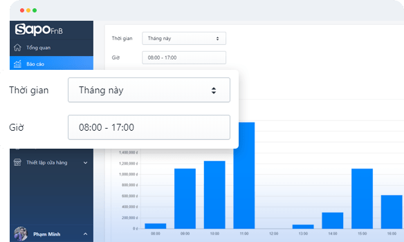Sapo FnB còn mang đến hệ thống biểu đồ khoa học giúp chủ quán có cái nhìn tổng quan về tính hình kinh doanh trong quán và từ đây bạn có thể đưa ra các chiến lược kinh doanh cũng như các chiến dịch marketing,chăm sóc khách hàng một cách tốt nhất